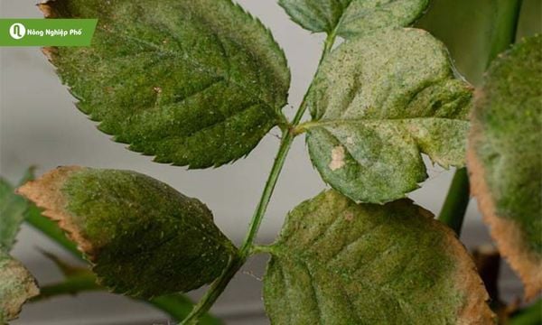 Bệnh sương mai là một trong những bệnh lý nguy hiểm trên hoa hồng vào mùa mưa, thường bùng phát mạnh khi thời tiết ẩm kéo dài. Bệnh do nấm Peronospora gây ra, xuất hiện với các đốm màu vàng nhạt hoặc nâu nhạt trên mặt lá, mặt dưới lá có lớp mốc mịn màu trắng xám. Lá bị bệnh sẽ nhanh chóng héo rũ, rụng sớm khiến cây suy kiệt nếu không can thiệp kịp thời.