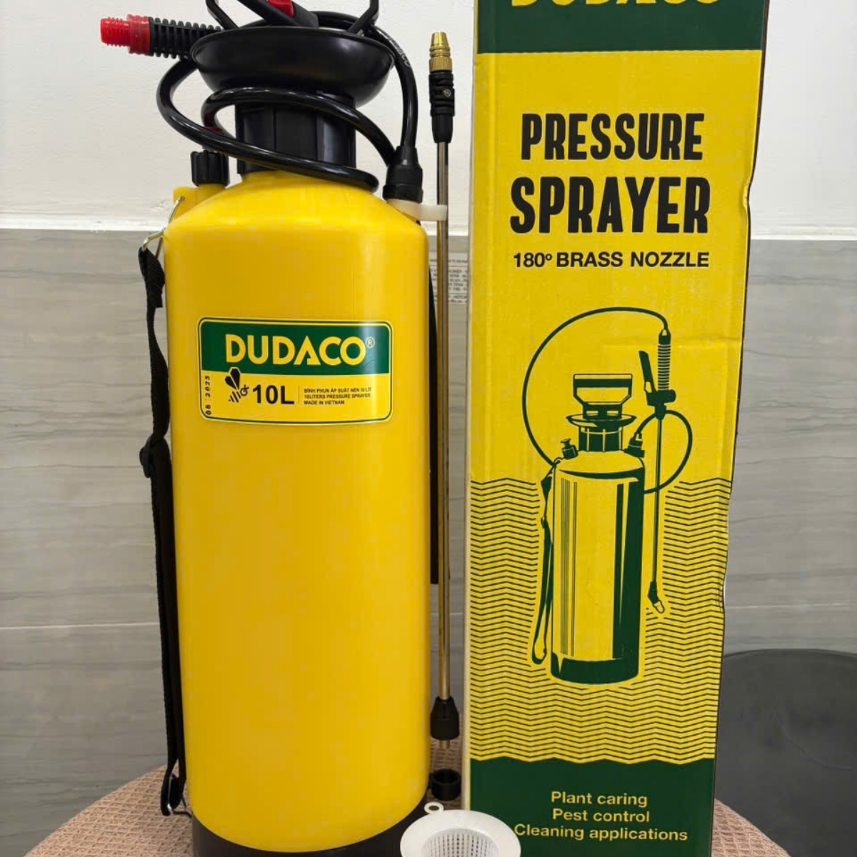 Mô tả: Bình xịt Dudaco 10 lít B10L/B1001 là dòng bình phun dung dịch chuyên dụng, thiết kế hiện đại và chắc chắn. Với dung tích 10 lít vừa phải kết hợp cùng béc đồng gạt cao cấp, sản phẩm là lựa chọn tối ưu cho việc chăm sóc cây cảnh, phun thuốc nông nghiệp hoặc khử khuẩn vệ sinh công nghiệp, đảm bảo độ bền và hiệu quả phun sương vượt trội.