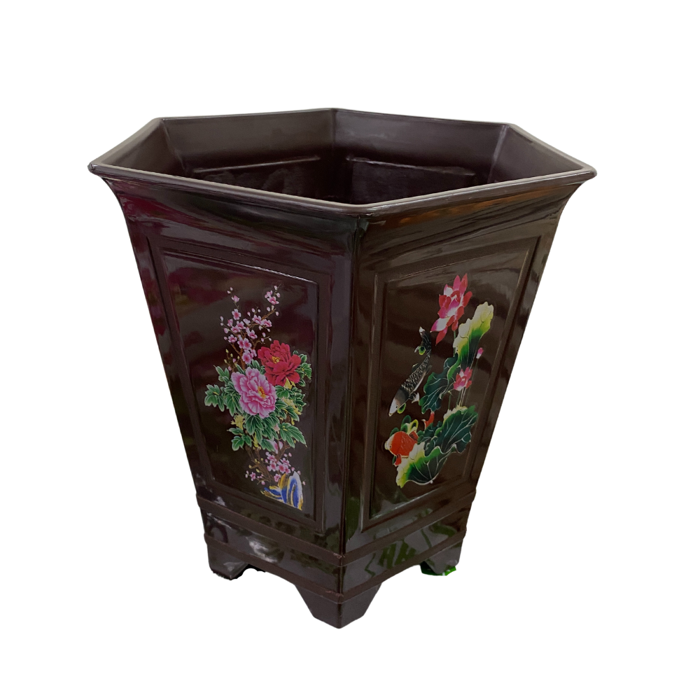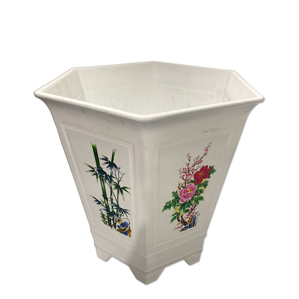 Chậu lục giác in họa tiết 35X35H được sản xuất từ nhựa PP cao cấp, với thiết kế lục giác cùng bề mặt được in lụa các bức tranh cổ phong, mang lại vẻ đẹp trang trọng, cổ điển nhưng không kém phần sang trọng, đẳng cấp.