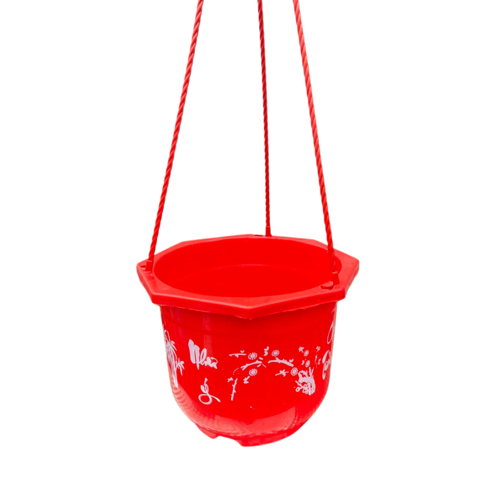 Mô tả sản phẩm: Chậu treo in họa tiết trồng hoa kiểng được sản xuất từ nhựa PP bền và đẹp. Với chất liệu bền đẹp và thiết kế bắt mắt, sản phẩm thích hợp dùng để trồng các loại hoa treo dạng bụi rũ như các loài hoa dạ yên thảo, cây đô la, trầu bà thái xanh, cây tỷ phú, lan tim treo,... để trang trí trước cửa, trên ban công. Đặc biệt, các quán cafe rất ưa thích các loại chậu treo dạng lớn này để trồng các loại hoa trang trí cho quán cafe xinh động và tạo cảm giác thoải mái cho khách hàng thưởng thức các ngụm cafe nguyên chất.