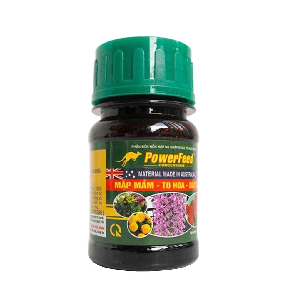 Sản phẩm Powerfeed được dùng để kích thích ra hoa, dưỡng hoa lâu tàn. Điều hòa sinh trưởng Acroot với thành phần chính là α – Naphthyl Acetic Acid (NAA) với công dụng nổi trội chính là ra rễ - bật mầm đồng thời giúp tăng khả năng chống chịu cho cây trồng.