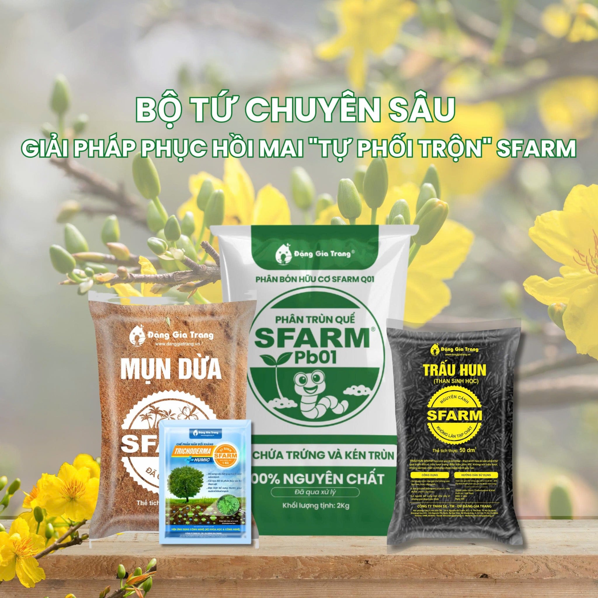 - Trùn quế SFARM (2kg): Dinh dưỡng hữu cơ lành tính giúp cây hồi sức bền bỉ.