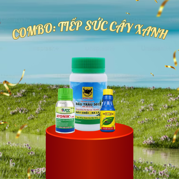 Mô tả: Bộ sản phẩm "giải cứu" chuyên dụng cho cây xanh trang trí nội thất bị suy yếu, héo rũ do sốc nhiệt hoặc thiếu sáng sau kỳ nghỉ Tết. Combo giúp cây cân bằng lại quá trình sinh trưởng, chống vàng lá và kích thích ra lớp lá mới xanh tốt để thay thế lớp lá cũ đã kiệt quệ.