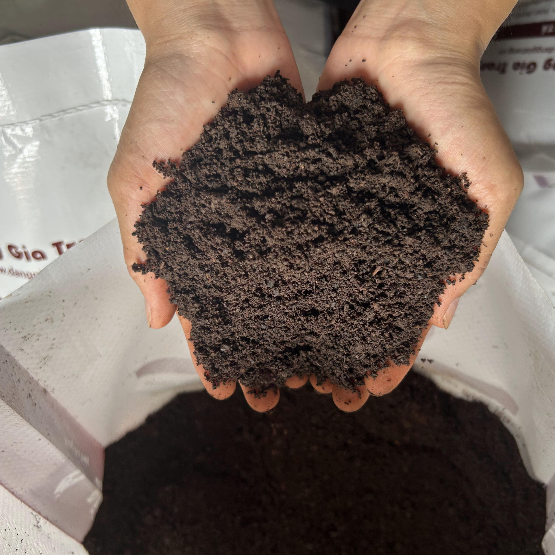 Mùn hữu cơ (xác bã vỏ cà phê, vỏ cacao, mùn bã nấm) ủ vi sinh hoai mục