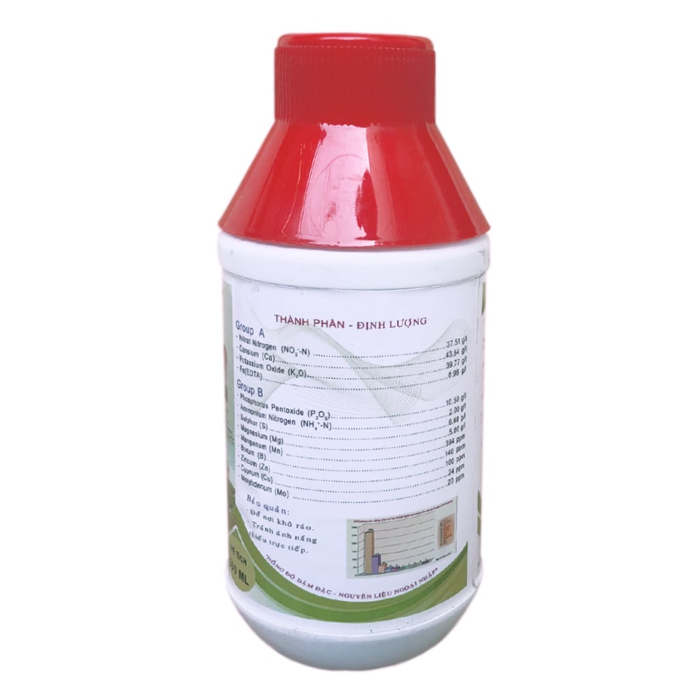• Nhóm dinh dưỡng trung lượng: đây là các chất dinh dưỡng khoáng thiết yếu mà cây trồng cần ở mức trung bình như Cansium (Ca) 43.54 g/l, Fe (EDTA) 0.98 g/l, Sulphur (S) 6.68 g/l, Magnesium (Mg) 5 g/l.