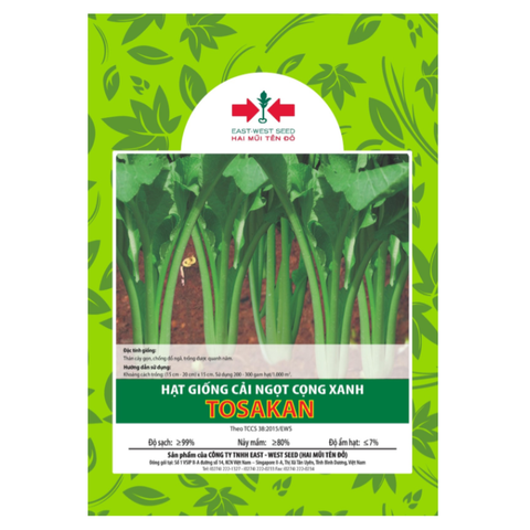 Mô tả: Hạt giống Cải ngọt cọng xanh Tosakan (Hai Mũi Tên Đỏ) là giống cải có thân gọn, chống đổ ngã, trồng được quanh năm.