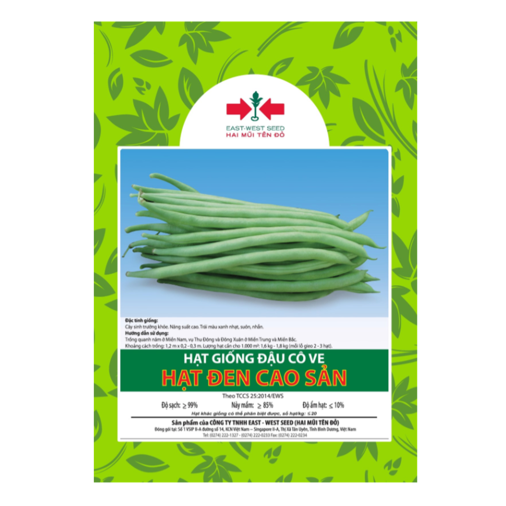 Mô tả: Hạt giống là giống đậu co ve sinh trưởng khỏe. Năng suất cao. Trái màu xanh nhạt, suôn, nhẵn.