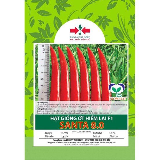 Hạt giống Ớt hiểm lai F1 Santa 8.0 East-West Seed (Hai Mũi Tên Đỏ) - Gói 12 hạt