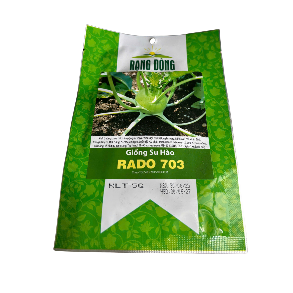Hạt giống Su Hào RADO 703 – Gói 5g là giống su hào cao sản có khả năng sinh trưởng mạnh, thích nghi tốt với nhiều vùng khí hậu trên cả nước. Cây phát triển đồng đều, củ to tròn đẹp, vỏ xanh nhạt, ruột trắng giòn và vị ngọt thanh đặc trưng. Giống cho năng suất cao, thời gian thu hoạch ngắn, thích hợp trồng quanh năm, đặc biệt hiệu quả vào vụ Đông Xuân và vụ sớm.