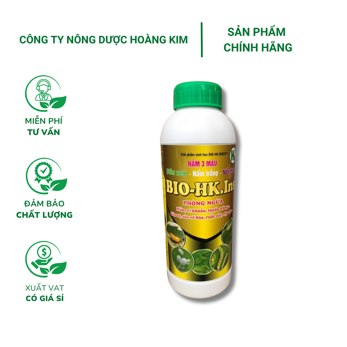 Nấm 3 màu BIO-HK. INS (Chai 1 Lít) - Phòng ngừa nấm, vi khuẩn, tuyến trùng, sâu tơ, vẽ bùa, ruồi, rầy, rệp sáp