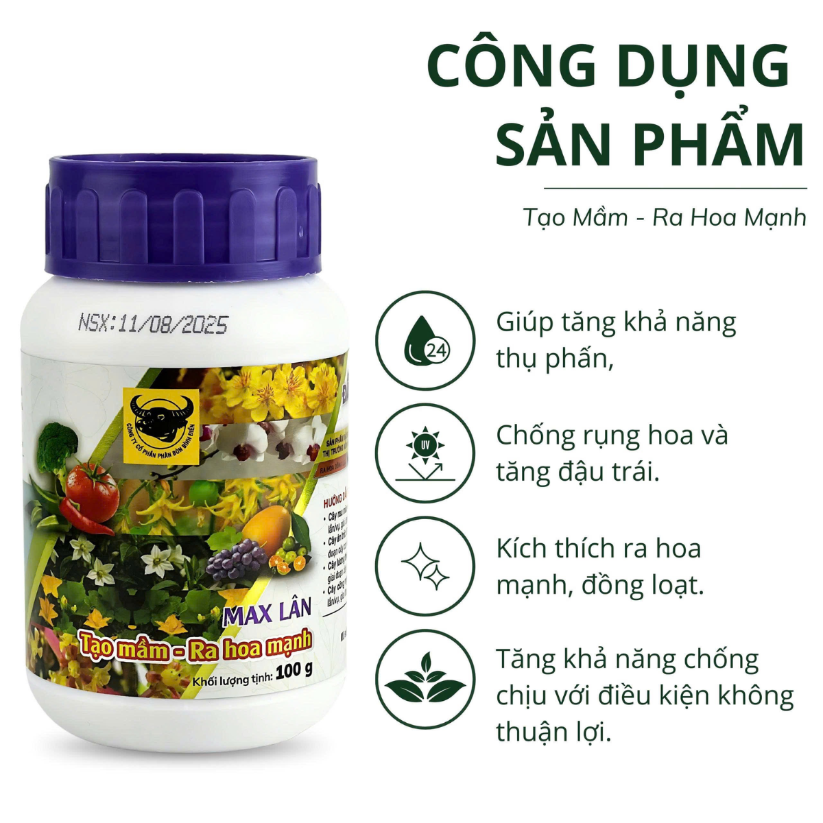 Phân Đầu Trâu MAX LÂN 58 siêu kích tạo mầm hoa - Chai 100 gram