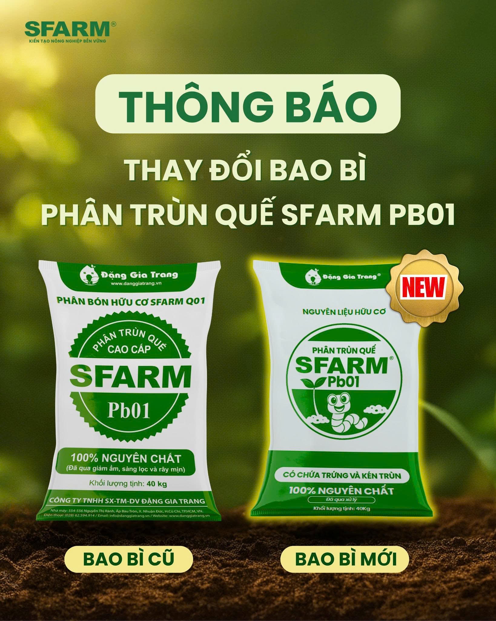 Công ty Đặng Gia Trang với thương hiệu SFARM đã có gần 10 năm kinh nghiệm trong lĩnh vực sản xuất và phân phối các loại phân bón hữu cơ, đặc biệt là phân trùn quế. Đây là đơn vị hàng đầu tại Việt Nam về sản xuất và phân phối các loại phân bón hữu cơ, trong đó có sản phẩm phân trùn quế cao cấp SFARM PB01. Sản phẩm này được làm từ trùn quế và phân trùn quế theo công nghệ tiên tiến, có nhiều lợi ích cho cây trồng và môi trường. Ngoài ra Công ty Đặng Gia Trang cam kết mang đến cho khách hàng những sản phẩm chất lượng cao, an toàn và hiệu quả.