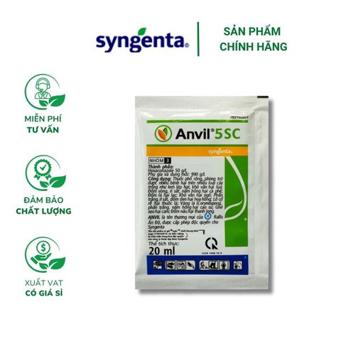 Mô tả: Thuốc ANVIL 5SC là một loại thuốc bảo vệ thực vật được sản xuất từ hoạt chất Hexaconazole với hoạt lực mạnh mẽ, giúp trừ hiệu quả các loại bệnh trên cây trồng như: khô hoa, lem lép hạt, bạch vòng, bạch, rỉ sét, thối cổ rễ, vàng lá,...